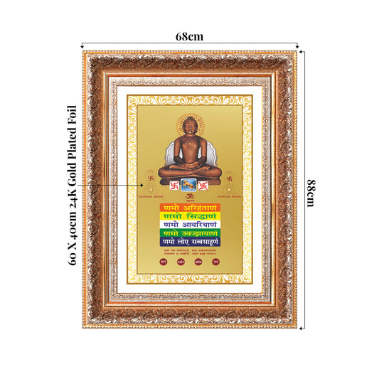 Lord Mahavira with Namokar Mantra | Jain Tirthankara Wall Mount Photo Frame in 24K Gold Plated Foil