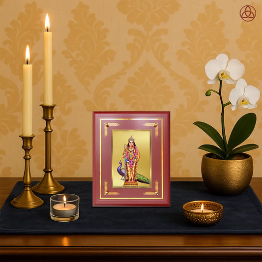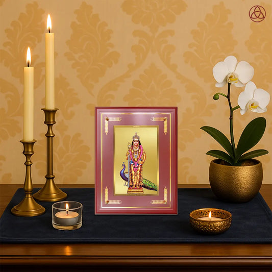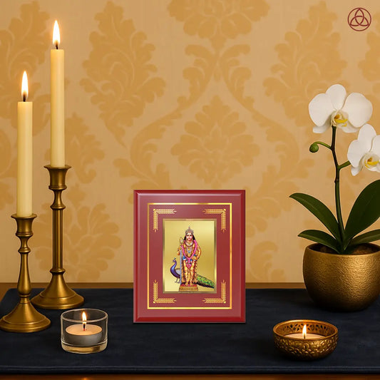 Lord Murugan Kartikeya | Divine Warrior God Wall & Tabletop Photo Frame in 24K Gold Plated Foil