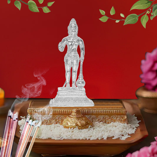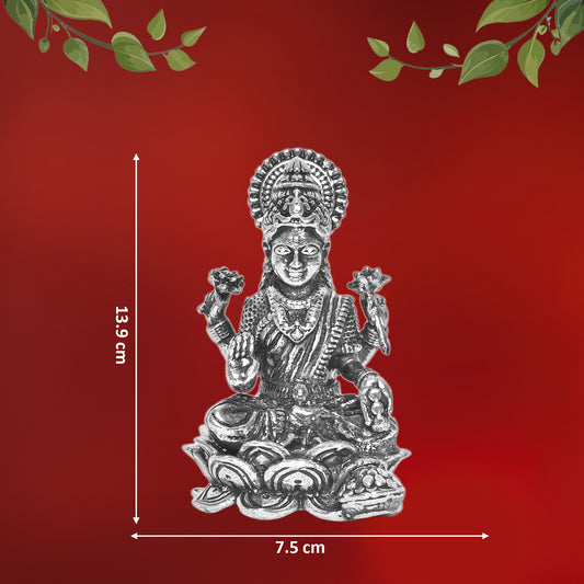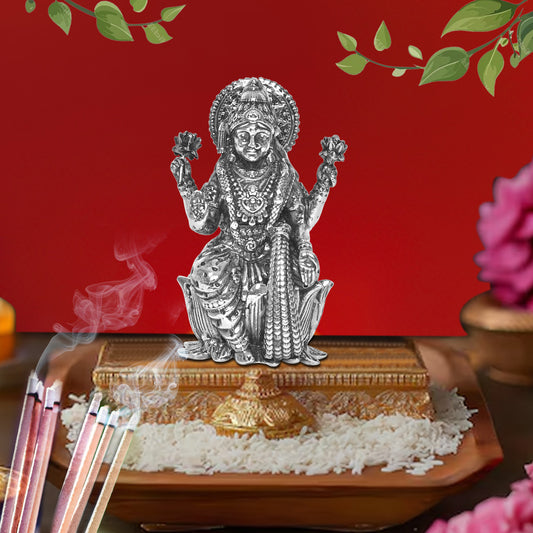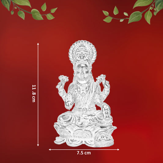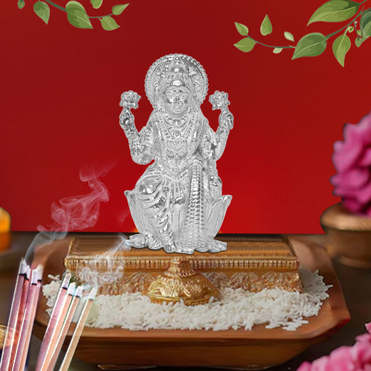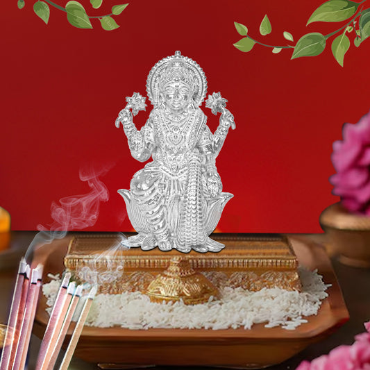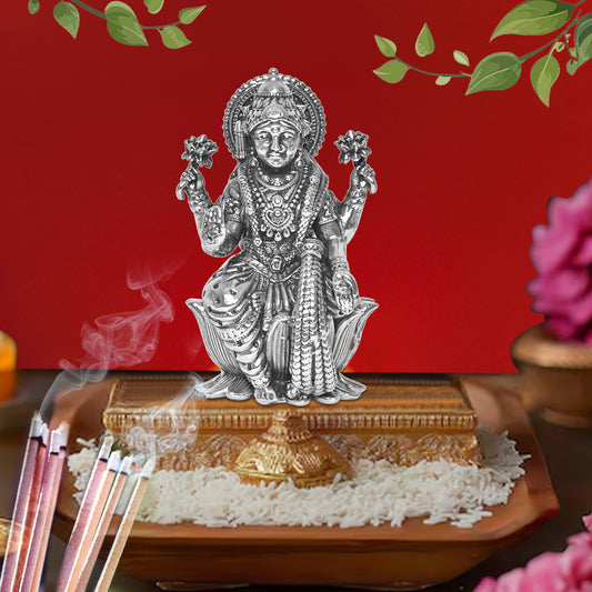 999 Silver-Plated Lakshmi Idol on Lotus | Home, Office & Temple Décor | Prayer & Gift (8x5.5 CM)