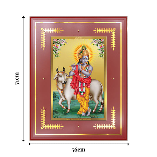 Lord Krishna with Surbhi Cow Wall Photo Frame in 24K Gold Plated Foil | Compassion, Prosperity & Divine Harmony
