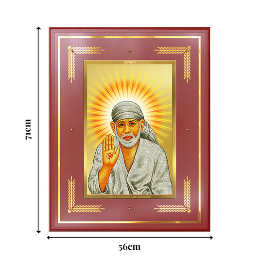 Shirdi Sai Baba Blessing Pose Wall Photo Frame in 24K Gold Plated Foil | Faith, Protection & Divine Grace