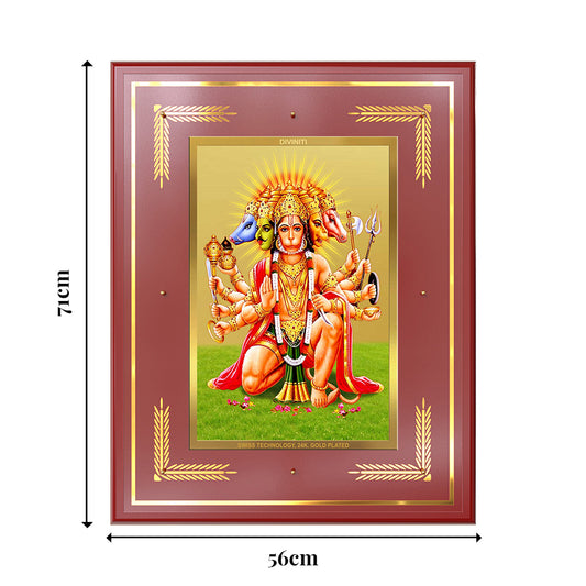 Panchmukhi Hanuman Wall Photo Frame in 24K Gold Plated Foil | Protection, Strength & Divine Power