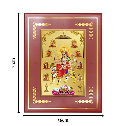 Nav Durga (Nine Durga) Wall Photo Frame in 24K Gold Plated Foil | Power, Protection & Divine Blessings