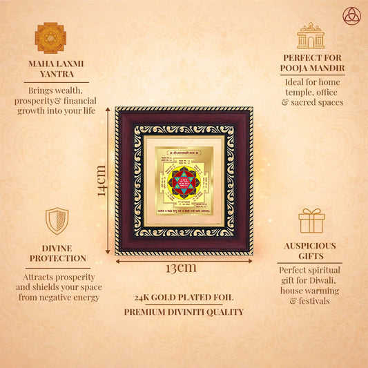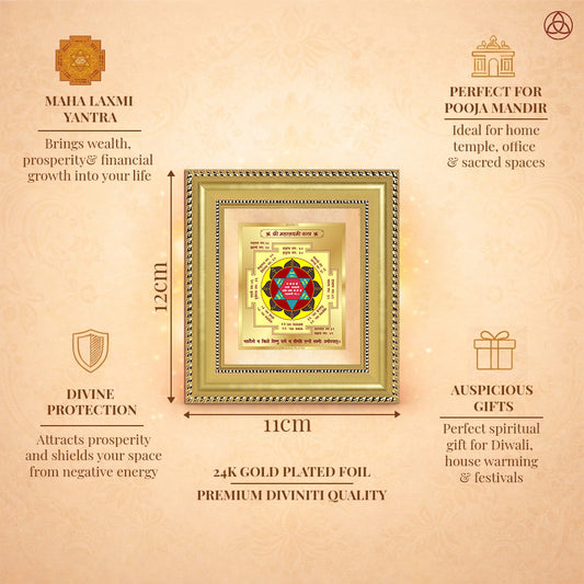 Maha Laxmi Yantra | Sacred Wealth & Prosperity Frame in 24K Gold Plated Foil