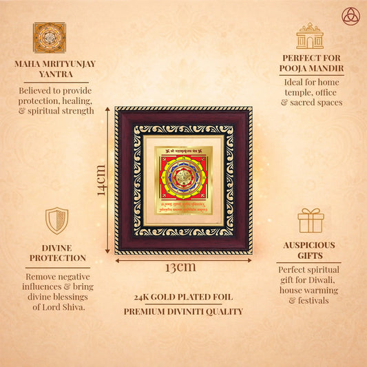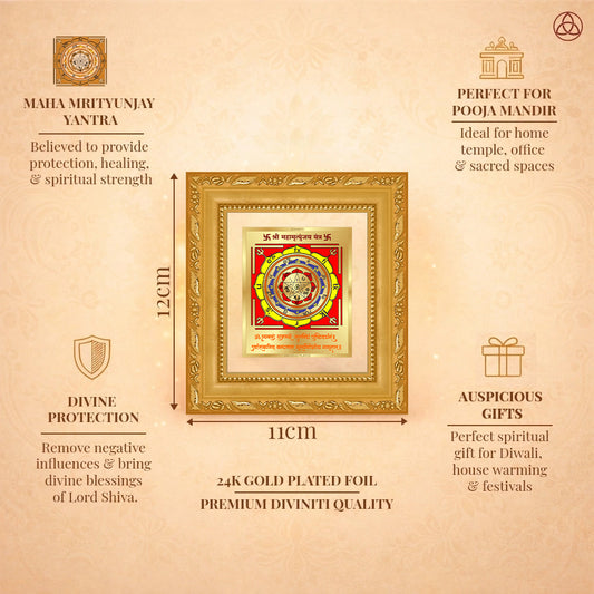 Maha Mrityunjay Yantra | Sacred Protection & Healing Frame in 24K Gold Plated Foil
