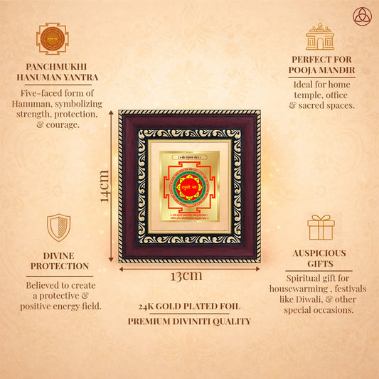 Panchmukhi Hanuman Yantra | Sacred Strength & Protection Frame in 24K Gold Plated Foil
