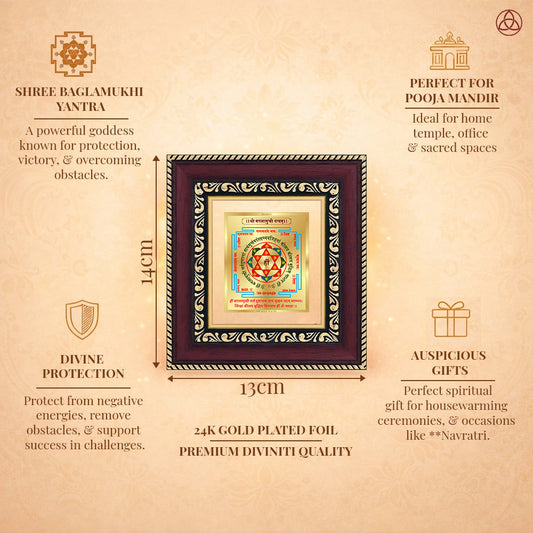Shree Baglamukhi Yantra | Sacred Protection & Victory Frame in 24K Gold Plated Foil