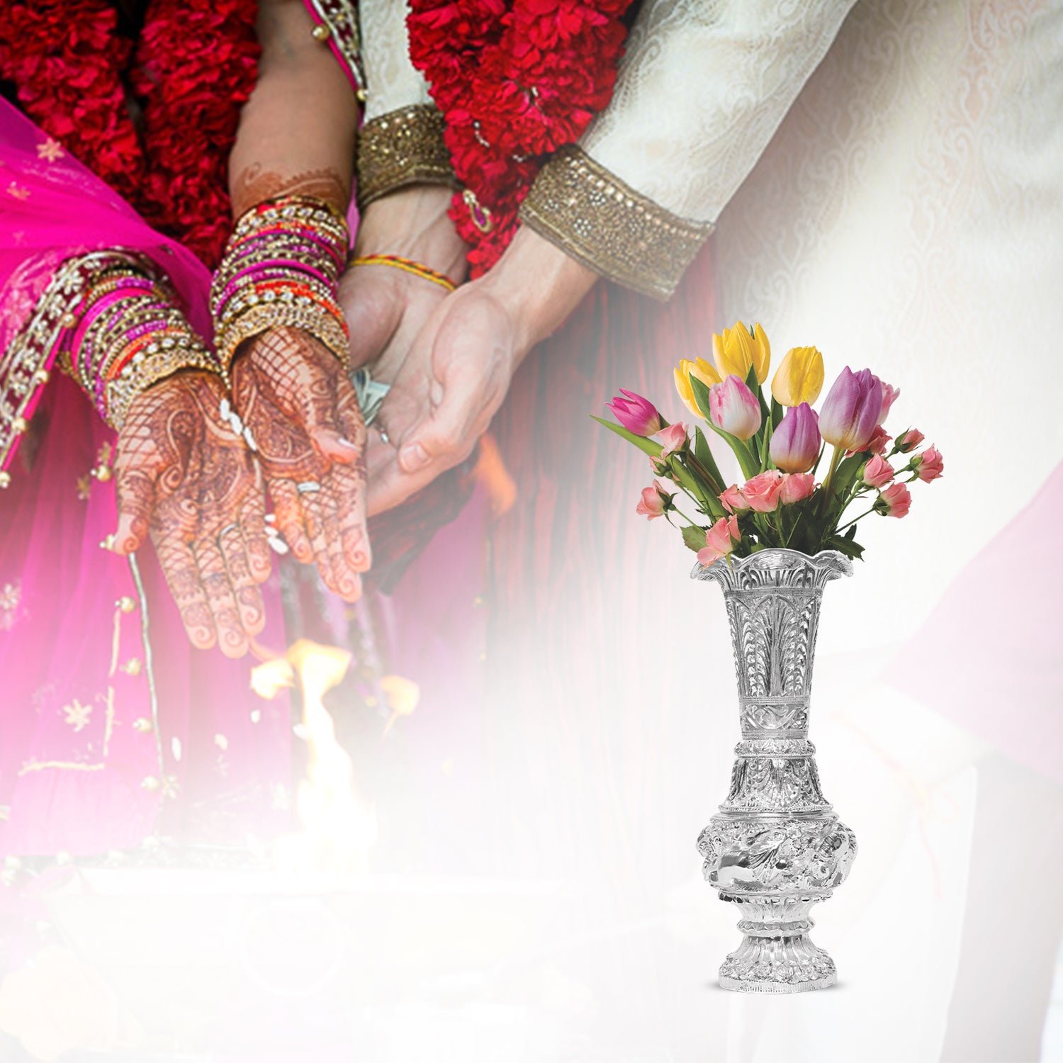 999 Silver Plated flower vase is well made with a high level of attention to detail for adding surprising elements to any ambience. Be it Celebration, festival, party or family get together, this vase is an excellent and elegant choice. The flower vase has modern decorative ingredients that help revive any dull or monotonous décor setting. The flower vase exhibits excellent craftsmanship which makes it a perfect for all occasions. The decorative piece isn’t just classy for an enhanced decoration but also durable enough to last long.