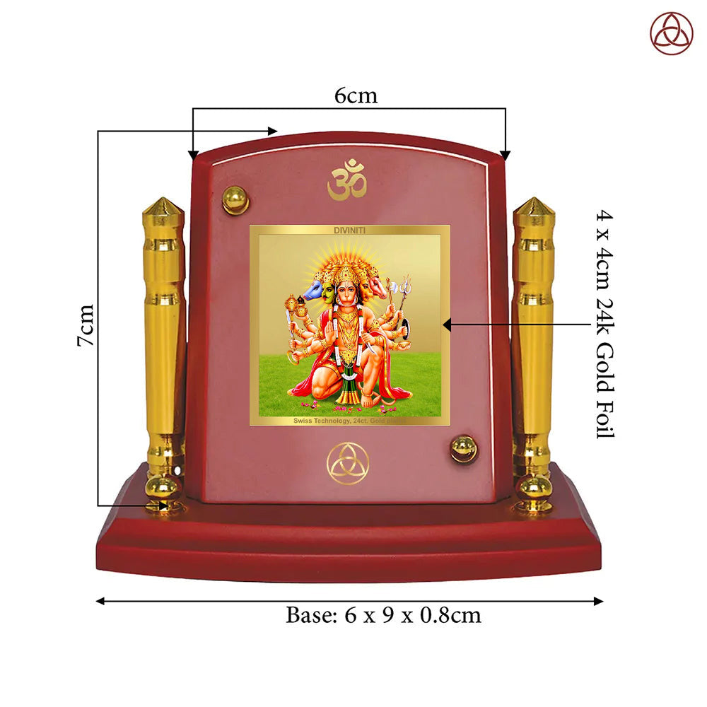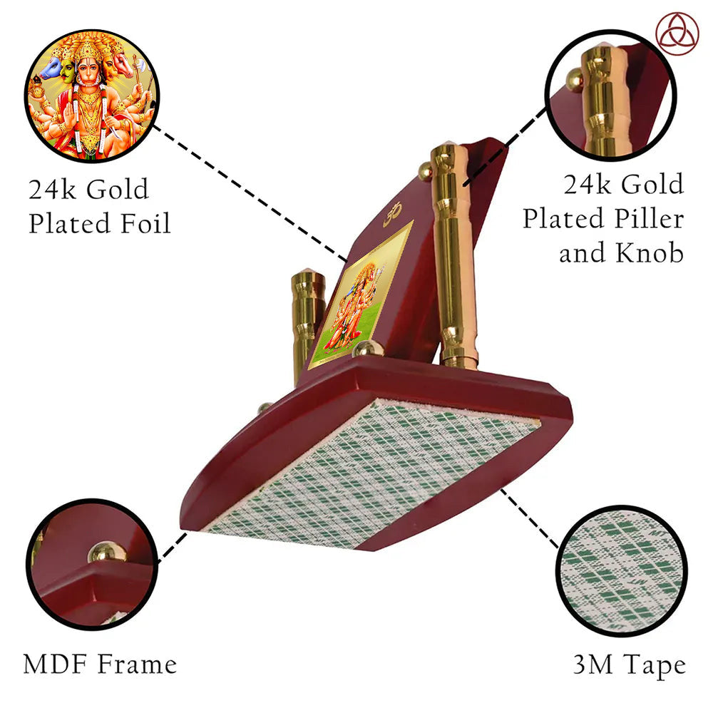 Panchmukhi Hanuman | Five-Faced Hanuman Car Dashboard Frame in 24K Gold Plated Foil
