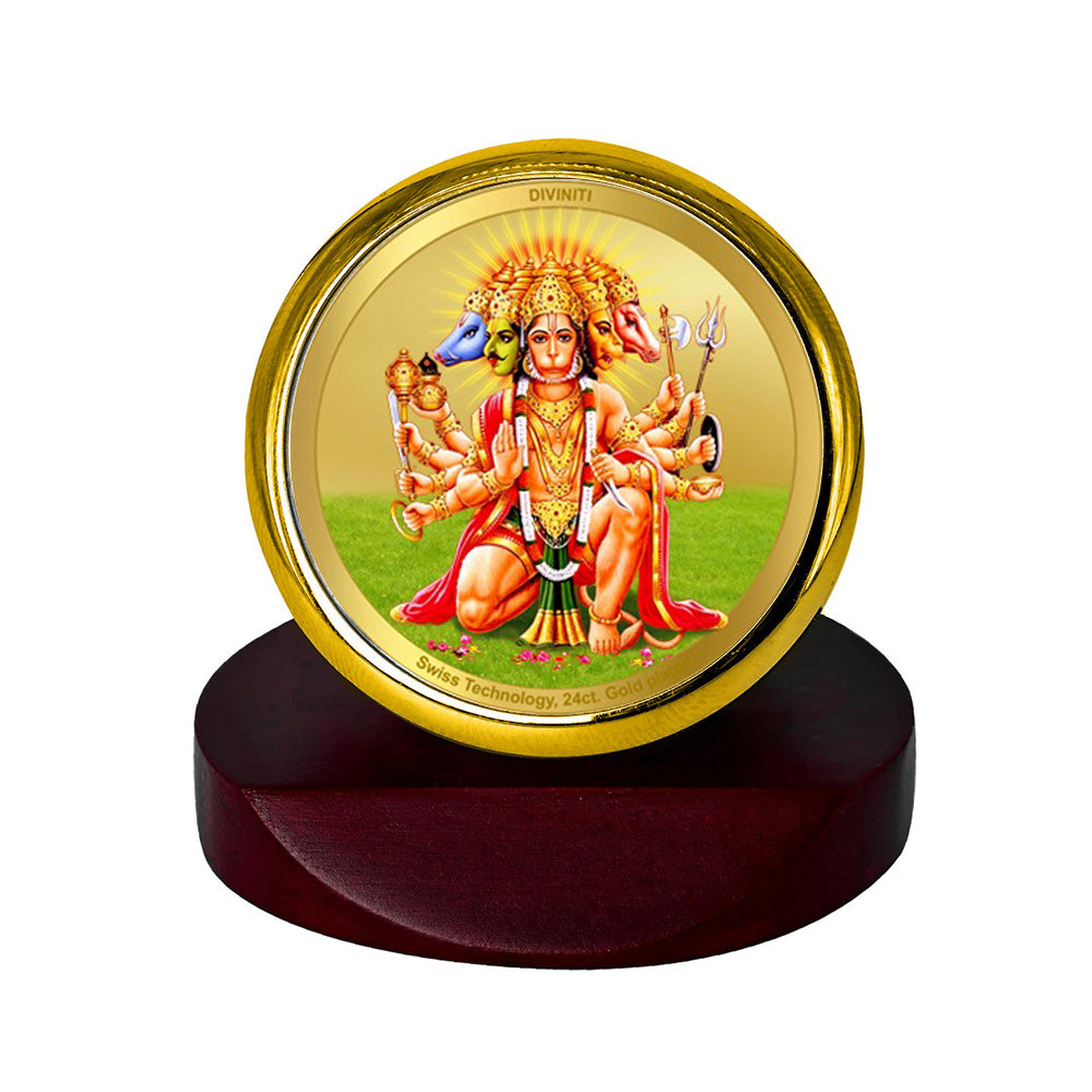 Panchmukhi Hanuman | Five-Faced Hanuman Car Dashboard Frame in 24K Gold Plated Foil