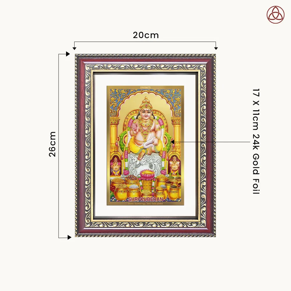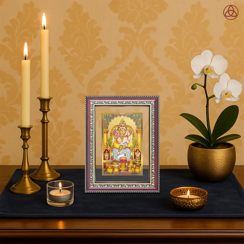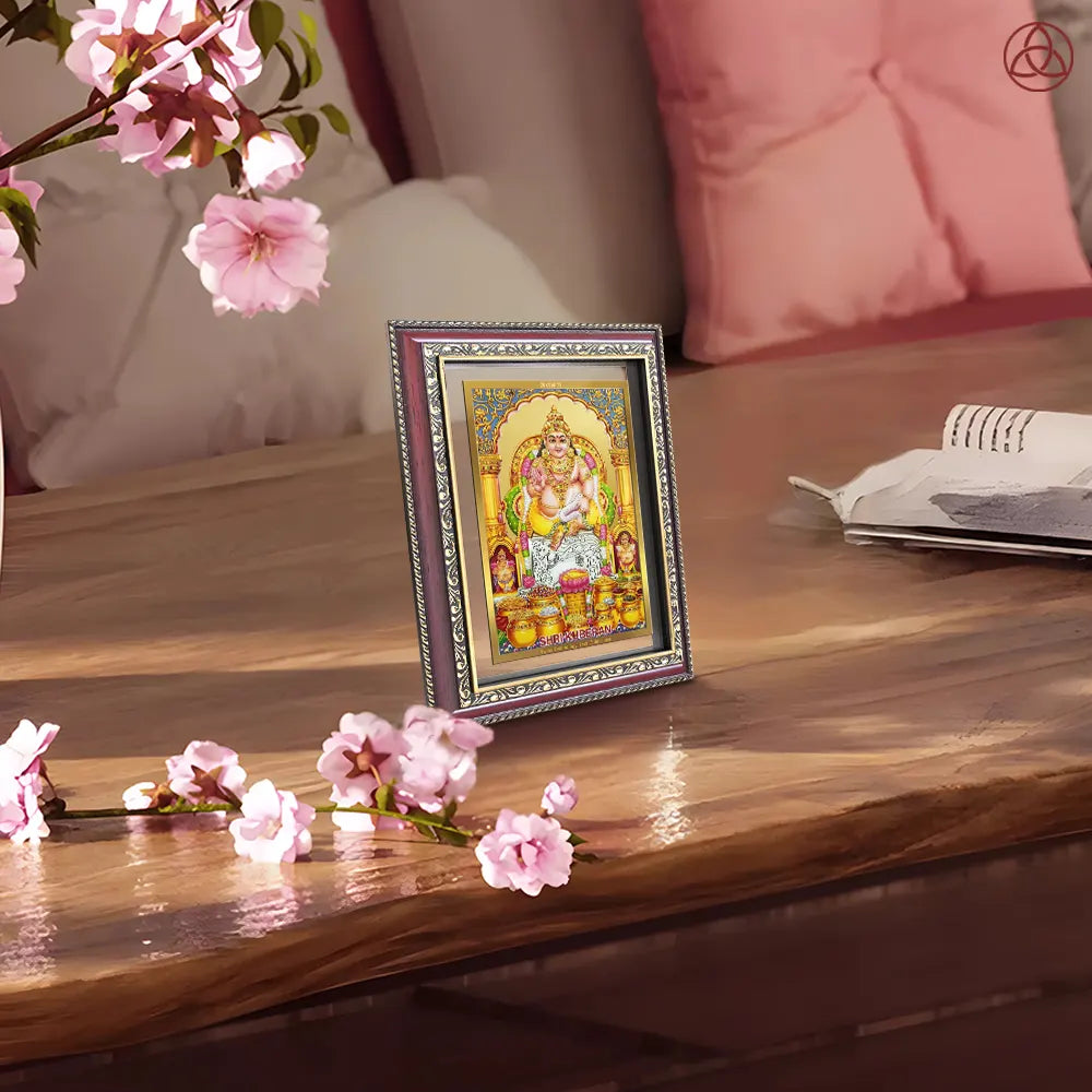 Sleek double glass wall & tabletop photo frame featuring 24K gold plated foil artwork perfect for temple, mandir, or spiritual decor.