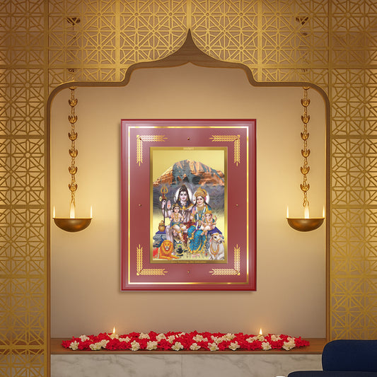 Shiva Parivar | Divine Family of Lord Shiva Wall Mount Photo Frame in 24K Gold Plated Foil