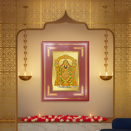Lord Tirupati Balaji | Sri Venkateswara | Supreme form of Vishnu from Tirumala Wall Mount Photo Frame in 24K Gold Plated Foil