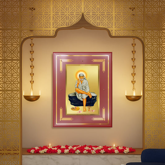 Sai Baba of Shirdi | Saint of Faith & Compassion Wall Mount Photo Frame in 24K Gold Plated Foil