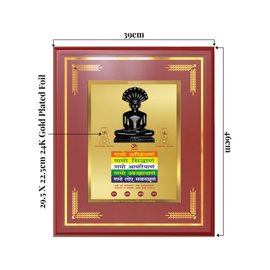 Lord Parshvanatha with Namokar Mantra | Jain Tirthankara Wall Mount Photo Frame in 24K Gold Plated Foil