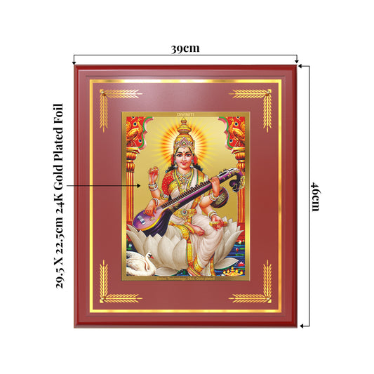Goddess Saraswati | Divine Mother of Wisdom & Arts Wall Mount Photo Frame in 24K Gold Plated Foil