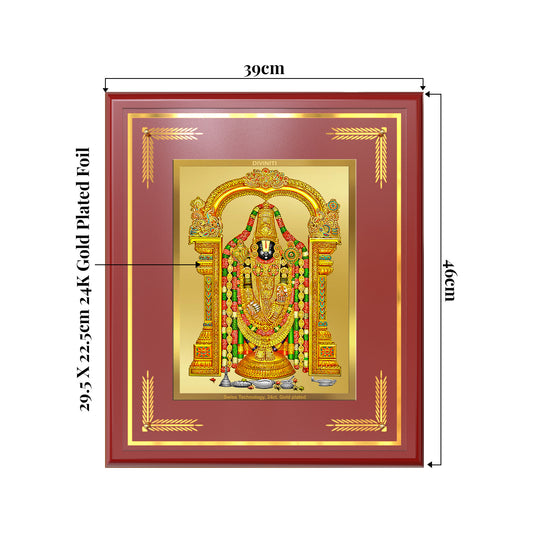 Lord Tirupati Balaji | Sri Venkateswara | Supreme form of Vishnu from Tirumala Wall Mount Photo Frame in 24K Gold Plated Foil