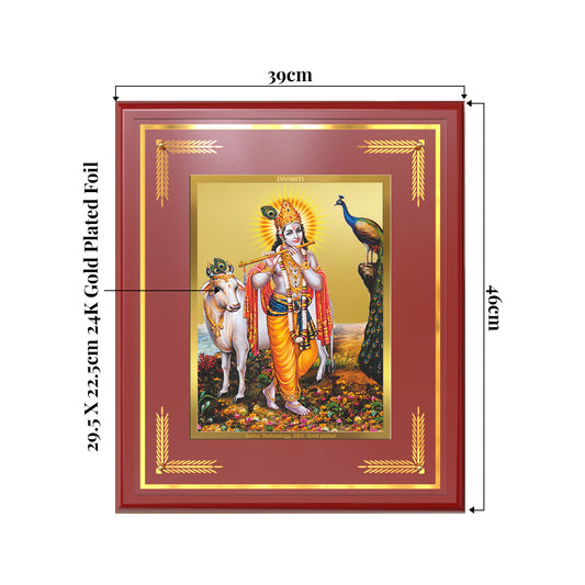 Lord Krishna with Surbhi Cow | Divine Wall Mount Photo Frame in 24K Gold Plated Foil