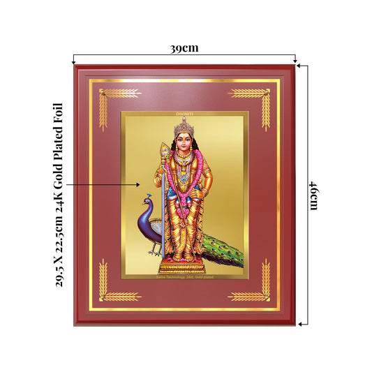 Lord Murugan | Divine Warrior God Wall Mount Photo Frame in 24K Gold Plated Foil