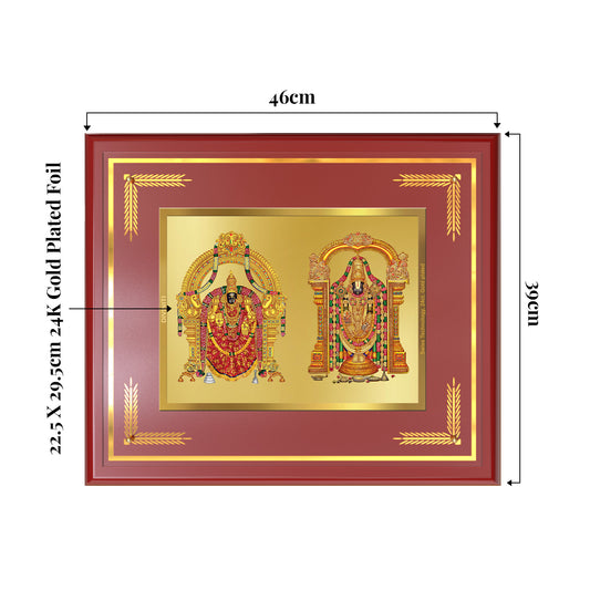 Lord Venkateswara Tirupati Balaji & Goddess Padmavati | Divine Couple Wall Mount Photo Frame in 24K Gold Plated Foil