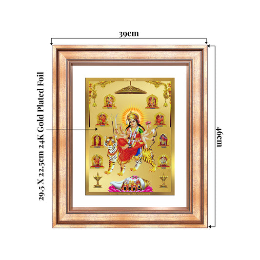 Durga Nav Durga | Goddess Durga in Her Nine Divine forms Wall Mount Photo Frame in 24K Gold Plated Foil