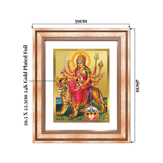 Durga Sherawali Mata with Pind | Divine Wall Mount Photo Frame in 24K Gold Plated Foil