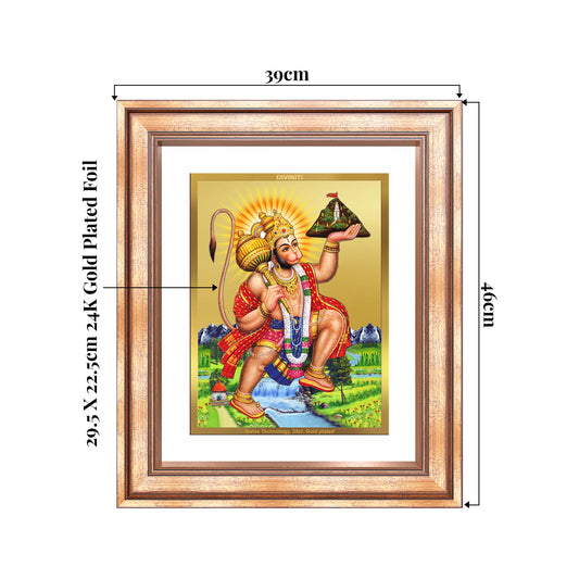 Hanuman Carrying Sanjeevani Mountain | Lord Hanuman Wall Mount Photo Frame in 24K Gold Plated Foil