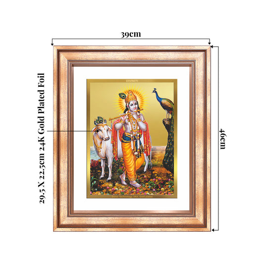 Lord Krishna with Surbhi Cow | Divine Wall Mount Photo Frame in 24K Gold Plated Foil