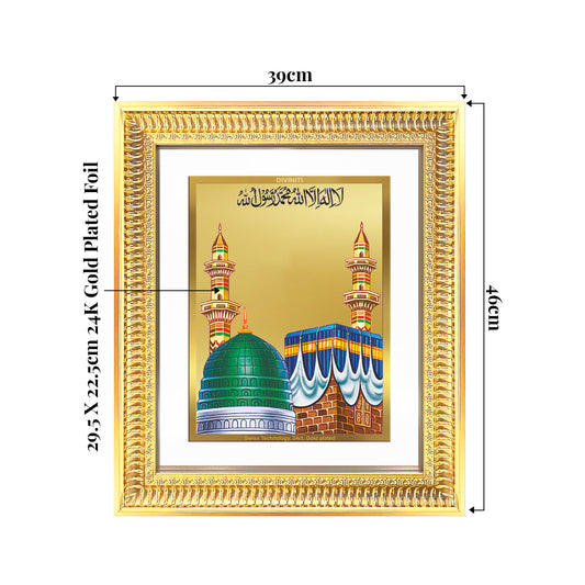 Mecca Madina | Sacred Islamic Landmark Wall Mount Photo Frame in 24K Gold Plated Foil