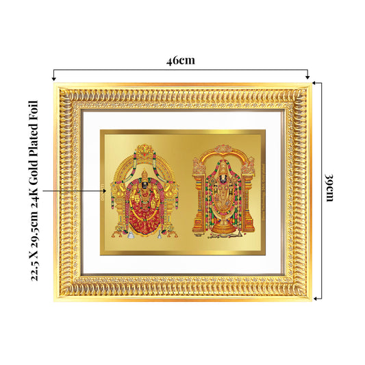 Lord Venkateswara Tirupati Balaji & Goddess Padmavati | Divine Couple Wall Mount Photo Frame in 24K Gold Plated Foil