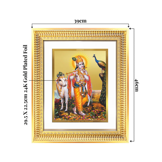 Lord Krishna with Surbhi Cow | Divine Wall Mount Photo Frame in 24K Gold Plated Foil