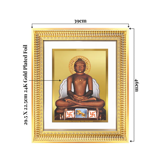 Lord Mahavira | Jain Tirthankara Wall Mount Photo Frame in 24K Gold Plated Foil