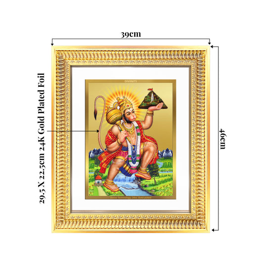Hanuman Carrying Sanjeevani Mountain | Lord Hanuman Wall Mount Photo Frame in 24K Gold Plated Foil