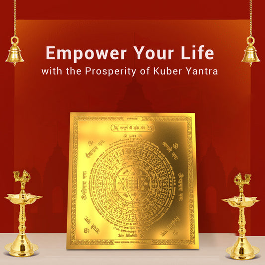 Diviniti 24K Gold Plated Kuber Yantra Attract Wealth Exquisite Key to Prosperity (15.5x15.5 CM)