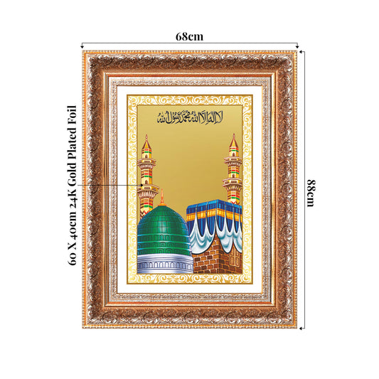 Mecca Madina | Sacred Islamic Landmark Wall Mount Photo Frame in 24K Gold Plated Foil