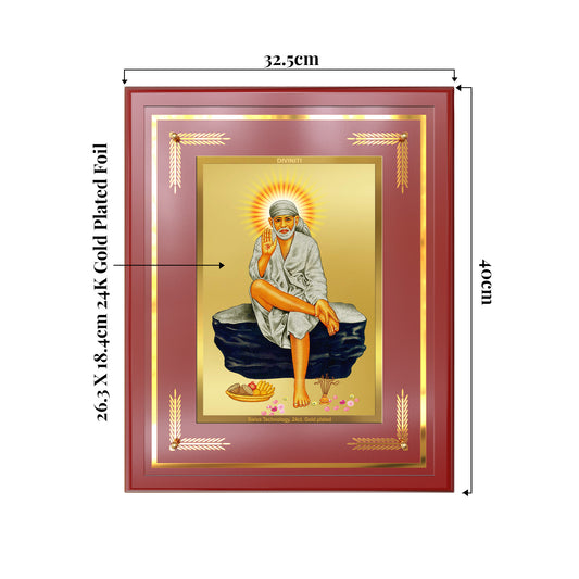 Sai Baba of Shirdi | Saint of Faith & Compassion Wall Mount Photo Frame in 24K Gold Plated Foil