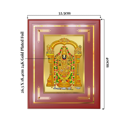 Lord Tirupati Balaji | Sri Venkateswara | Supreme form of Vishnu from Tirumala Wall Mount Photo Frame in 24K Gold Plated Foil