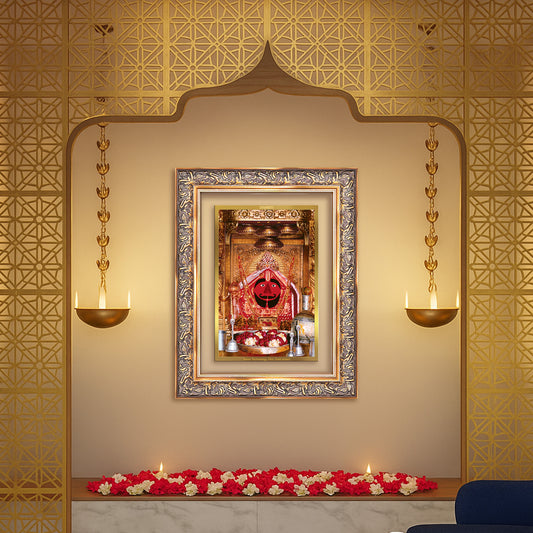 Durga Sherawali Mata with Pind | Divine Wall Mount Photo Frame in 24K Gold Plated Foil