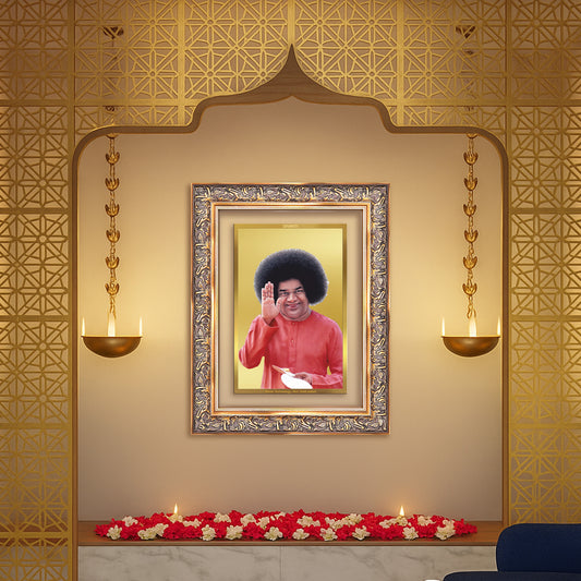 Sri Sathya Sai Baba | Avatar of Love and Universal Harmony Wall Mount Photo Frame in 24K Gold Plated Foil