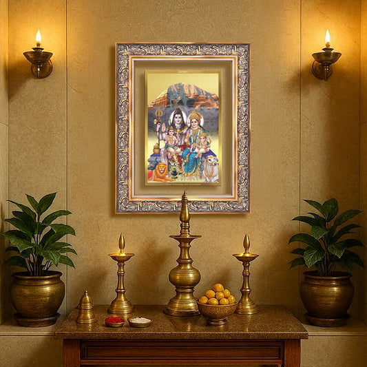 Shiva Parivar | Divine Family of Lord Shiva Wall Mount Photo Frame in 24K Gold Plated Foil