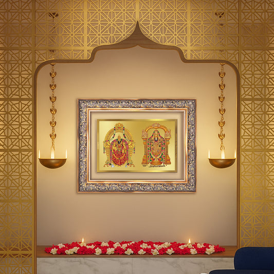 Lord Venkateswara Tirupati Balaji & Goddess Padmavati | Divine Couple Wall Mount Photo Frame in 24K Gold Plated Foil