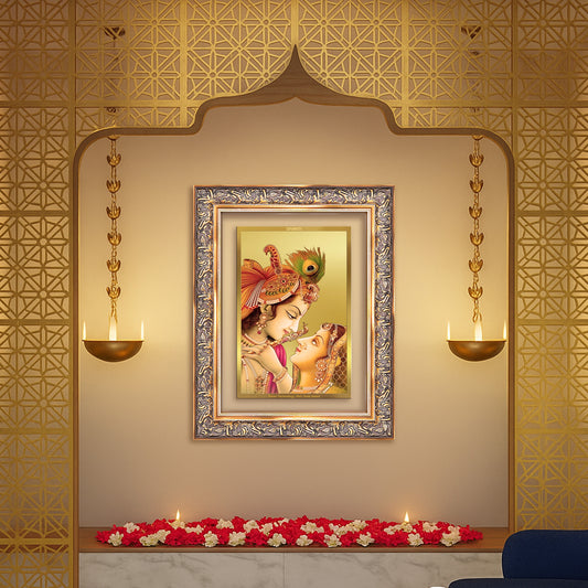 Radha Krishna with Flute | Lord Krishna Wall Mount Photo Frame in 24K Gold Plated Foil