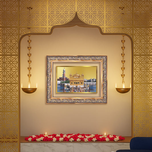 Sachkhand Shri Darbar Sahib | Golden Temple | Sacred Sikh Shrine Wall Mount Photo Frame in 24K Gold Plated Foil