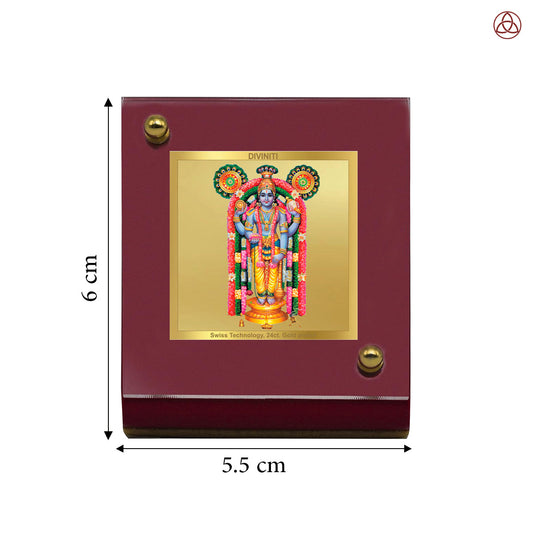 Diviniti 24K Gold Plated Guruvayurappan Ji Frame For Car Dashboard, Home Decor, Table Top (6 CM x 5.5 CM)