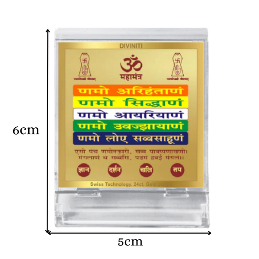 Diviniti 24K Gold Plated Namokar Mantra Frame For Car Dashboard, Home Decor, Table Top, Prayer (6 CM x 5.5 CM)