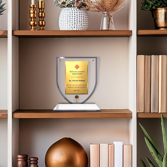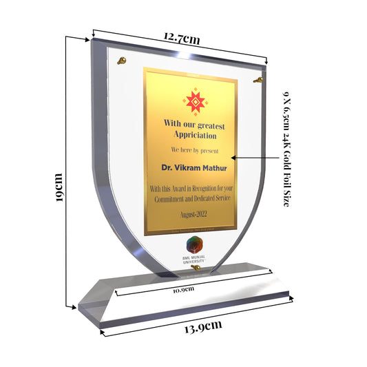 Crystal Shield Personalized Trophy Premium Appreciation Award with 24k Gold Plated Foil