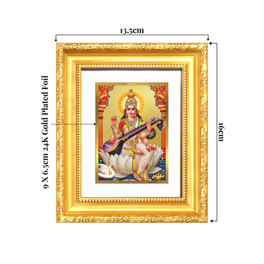Goddess Saraswati | Divine Mother of Wisdom & Arts Wall & Tabletop Frame in 24K Gold Plated Foil