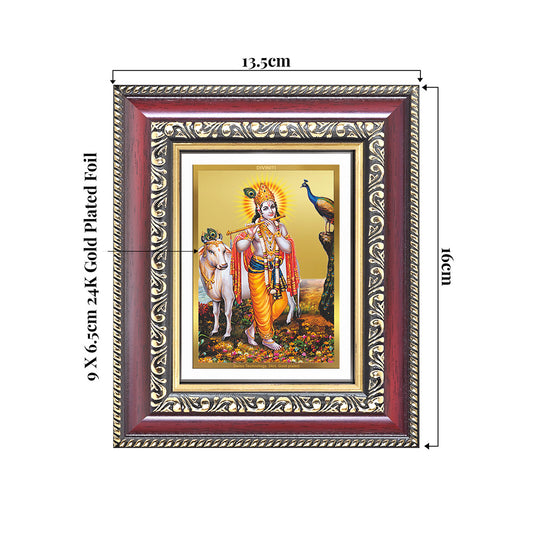 Lord Krishna with Surbhi Cow | Divine Wall & Tabletop Frame in 24K Gold Plated Foil