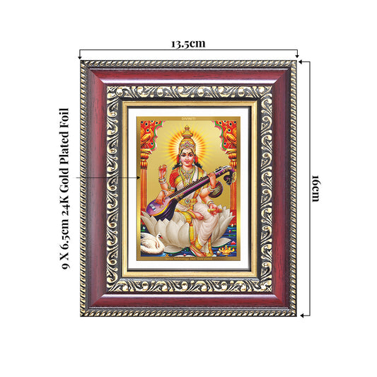 Goddess Saraswati | Divine Mother of Wisdom & Arts Wall & Tabletop Frame in 24K Gold Plated Foil