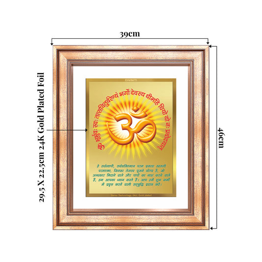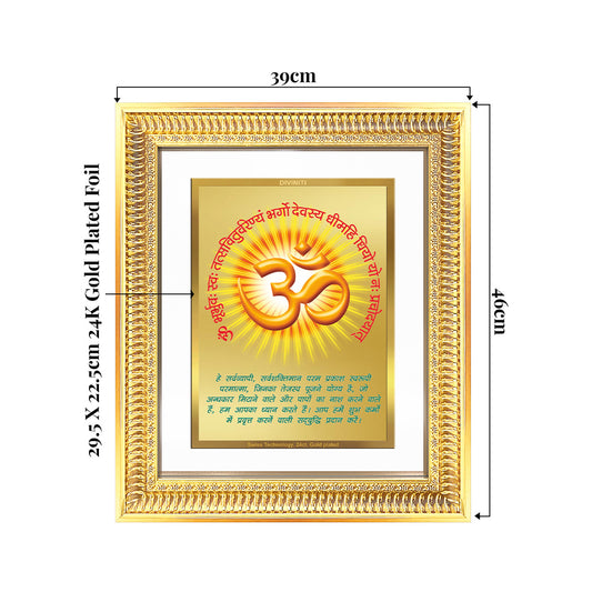 Om with Gayatri Mantra | Sacred Vibration & Vedic Wisdom Wall & Tabletop Frame in 24K Gold Plated Foil